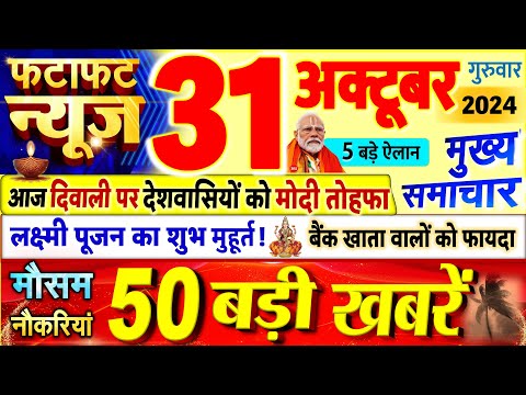 Today Breaking News ! आज 31 अक्टूबर 2024 के मुख्य समाचार बड़ी खबरें PM Modi, SBI, weather, Bank, CAB , Nonstop News | आज की ताजा ख़बरें | News Headlines | 31 October 2024 | Fatafat khabren || LIVE News | News Headlines | today news | Fatafat khabren | News in hindi | govnews # 31_October_2024 | #Today_Breaking_News | #मुख्य_समाचार | #Today_News_headlines | # 31_October_2024 #modi #video #watch #मौसम #विभाग #weather आज 31 October 2024 का मौसम